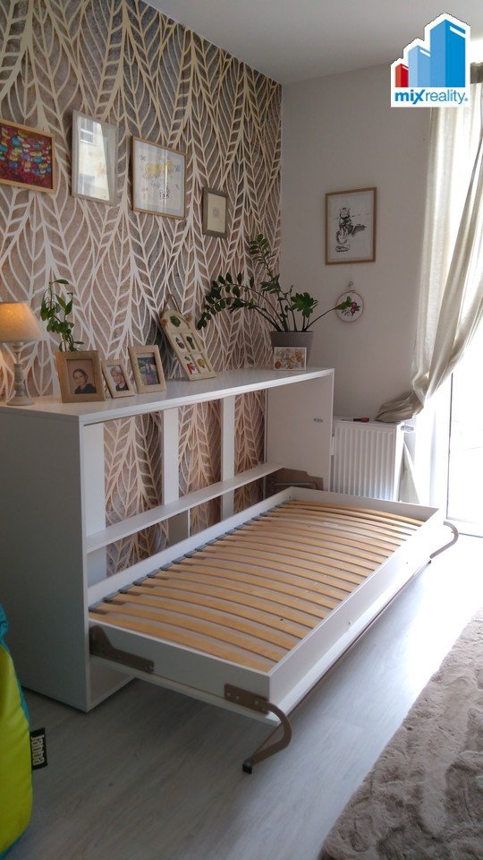 V bytě se nachází předsíň, pokoj s kuchyňským koutem, koupelna se sprchovým koutem a WC.
