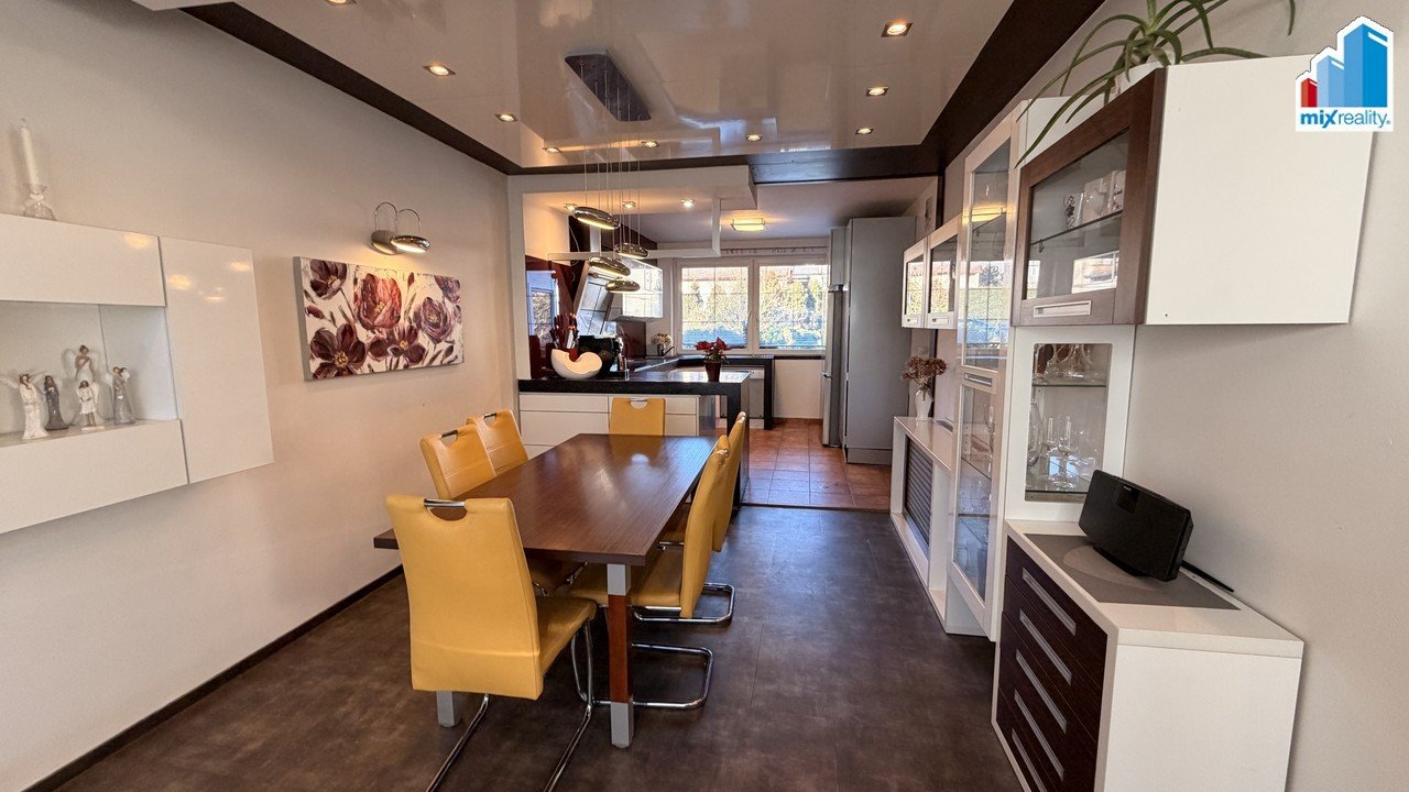 Hledáte klidné bydlení nedaleko Plzně? Naše společnost Mixreality Vám nabízí k prodeji prostorný rodinný dům v klidné části města Město Touškov, který je ve výborném technickém stavu a připraven k okamžitému nastěhování. Dům se zastavěnou plochou 130 m² nabízí komfortní užitnou plochu 240 m² rozloženou do tří nadzemních podlaží, dále sklep o velikosti 40 m² a garáž s dílnou o ploše 30 m². V přízemí se nachází prostorná moderní kuchyně propojená s obývacím pokojem se vstupem na venkovní terasu, která přirozeně rozšiřuje obytný prostor do zahrady. Dále je zde předsíň, koupelna, samostatné WC a vstup do sklepa. Druhé nadzemní podlaží nabízí velkorysý, klimatizovaný obývací pokoj se zimní zahradou, která zajišťuje dostatek světla a příjemnou atmosféru po celý rok, dále ložnici a koupelnu s WC. Ve třetím, klimatizovaným nadzemním podlaží se nacházejí dva samostatné pokoje, které lze využít jako dětské pokoje, pracovnu či pokoje pro hosty. Nemovitost je vytápěna ústředním topením, ohřev teplé vody zajišťuje elektrický bojler. Dům je pečlivě udržovaný a nevyžaduje žádné nutné investice. Na udržovaném pozemku se nachází zastřešený bazén, pergola pro příjemné posezení, vlastní studna a upravená zahrada poskytující dostatek soukromí i prostoru pro relaxaci. Tato nemovitost představuje ideální volbu pro rodinné bydlení v klidné lokalitě s dobrou dostupností do Plzně (Autobus ČSAD i MHD) a kompletní občanskou vybaveností. Dům je k dispozici ihned. K ceně nemovititosti se přičítá provize RK Mixreality. V případě zájmu o více informací či sjednání prohlídky nás neváhejte kontaktovat.