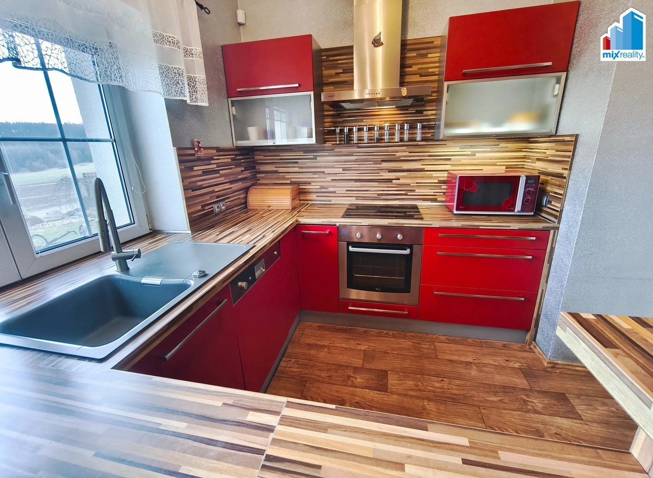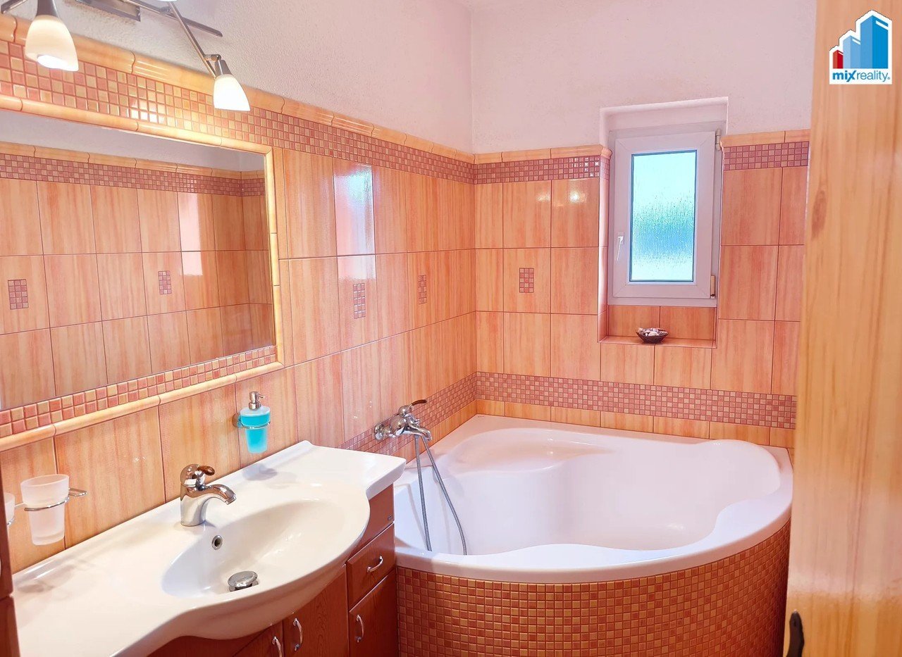 Zahrada je skutečnou oázou klidu – najdete zde okrasné jezírko, skleník pro pěstování vlastní zeleniny i krytou pergolu pro posezení s rodinou nebo přáteli. Komfortní bydlení zajišťují dvě plně vybavené koupelny, lodžie s výhledem a sklep pro uskladnění všeho potřebného.