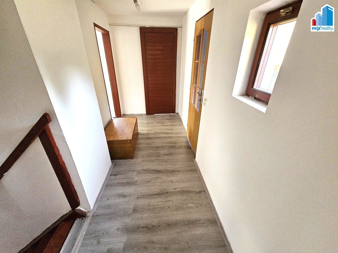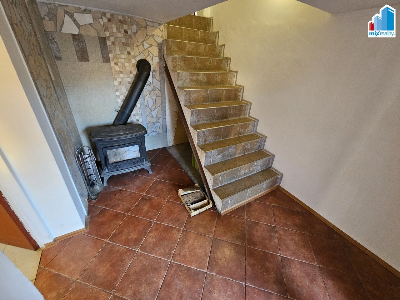 Při vstupu z ulice se nachází garáž, prádelna a technické zázemí. Po schodišti vstoupíte do hlavní obytné části, kde je kuchyně s kuchyňskou linkou, obývací pokoj se vstupem na lodžii, ložnice a koupelna s vanou a WC.